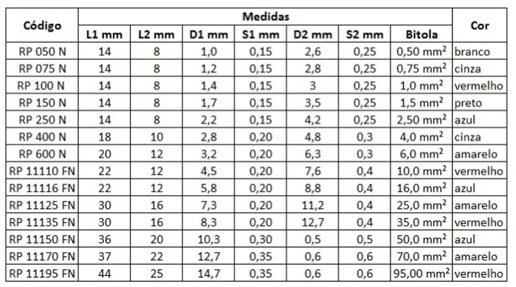 Finalidade: Terminações de condutores de cobre.